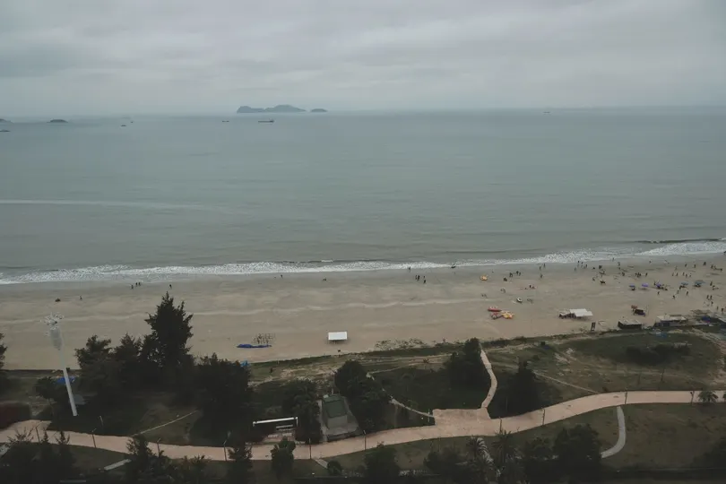 广东惠州双月湾的海岸,阴天 富士直出色彩