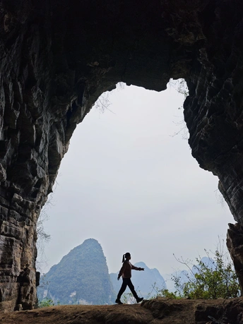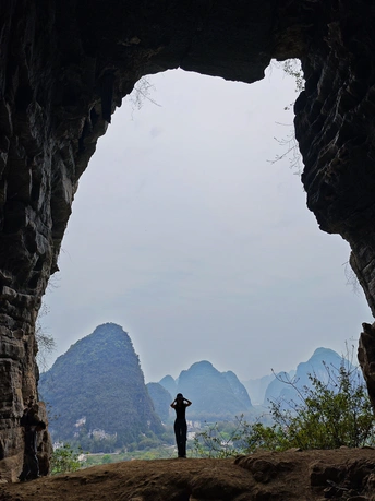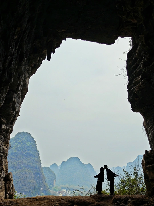 步入一个狭小的石门,呈现在眼前的是一个巨大的洞穴,据说这是抗日战争时期村民的避难之所,它烙下了历史的印记。如今这亦是阳朔的微小众打卡点,一种未知的美同样值得我们去探索和发现。