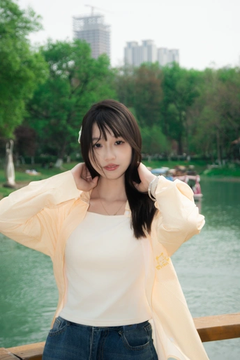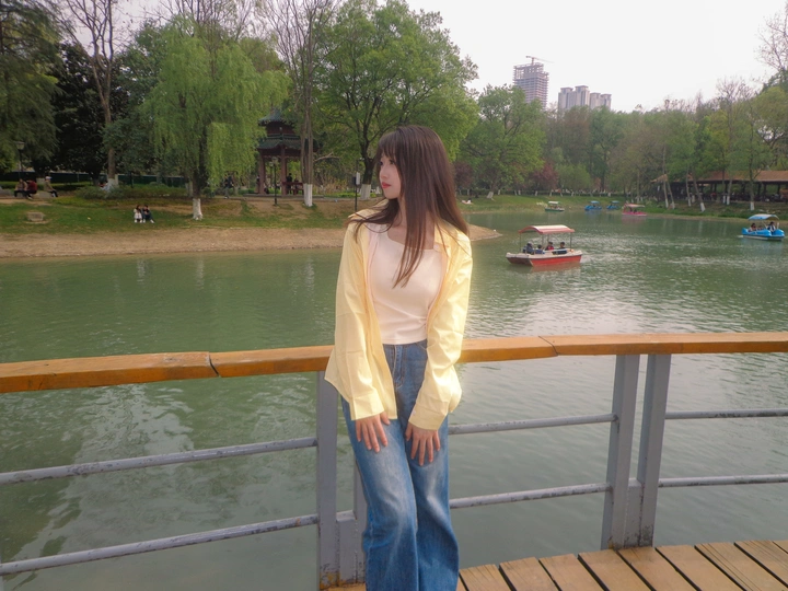 棕发被风揉成绸缎弧度 黄条纹衬衫裹着四月的慵懒 在和平公园的香樟滤镜里 我邂逅了会发光的莫奈绿 快门闪过时 光斑正沿着她的睫毛跳华尔兹 树影在衬衫上拓印印象派笔触 春色与少女默契地相视一笑 把整个下午茶时光都酿成了蜂蜜水 Tips:午后三点的东南角草坪有温柔侧逆光,湖滨步道转角能拍出绿野隧道纵深感~ #武汉