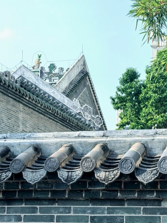 在都市林立的高楼中,一幢古庙静静矗立在春天的暖阳下,屋脊兽诉说着曾经的岁月痕迹,与周遭的绿树相映成趣,难得一见的春天景致。
