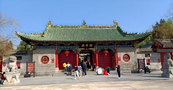 周口关帝庙,位于河南省周口市川汇区中州路沙颍河北岸,创建于清康熙三十二年(1693年),占地21600多平方米。系山西、陕西两省商贾集资兴建,为同乡集会场所,又称“山陕会馆”。周口关帝庙,整座建筑群占地20余亩,沿南北中轴线,分三进院落纵深布局,结构严谨。其木雕、石雕、砖雕数量多,内容丰富,工艺精湛,突出反映了清代中晚期那种追求精雕细琢、装饰华丽的社会风尚。建筑装饰的题材中大量采用了“二龙戏珠”、“凤凰牡丹”、“五福捧寿”、“加官进爵”、“金玉满堂”等各种吉祥如意图案纹饰,是封建社会中传统伦理道德的形象反映。1996年11月20日,周口关帝庙被国务院批准为第四批全国重点文物保护单位。