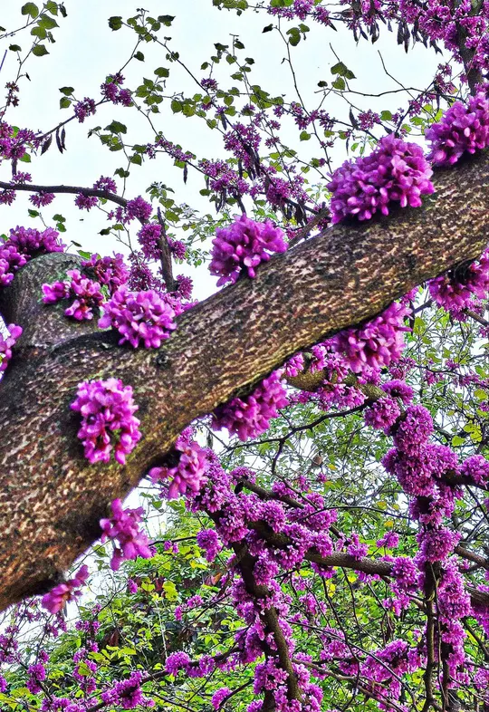惊喜紫荆树干上的花朵!