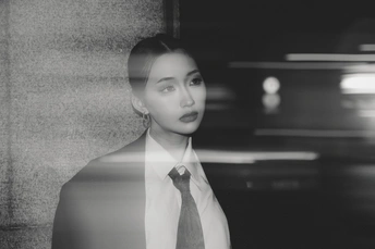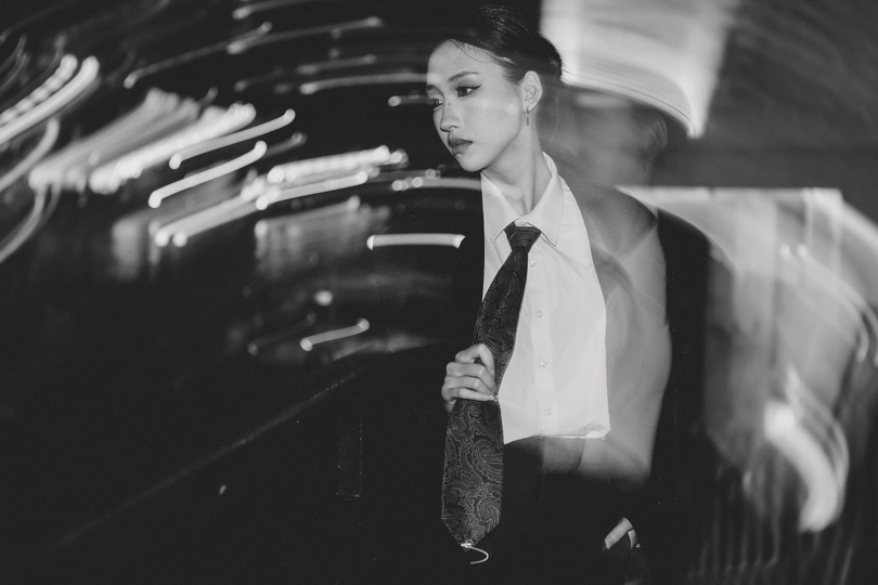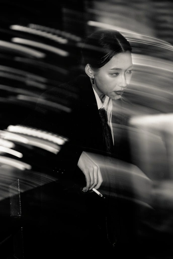 夜幕下的光与影 | 黑白人像摄影的高级感 🌧️ 微微雨夜,西装革履的深邃氛围 ——当雨滴轻敲夜色,黑与白的碰撞让每一帧都充满故事感。 ✨ 拍摄灵感 模特一身剪裁利落的黑色西装,在潮湿的街道上勾勒出冷峻线条。雨丝轻落,路灯的光晕成为天然柔光箱,让轮廓更显高级。 📷 摄影技巧 ➊ 低感光度+慢门:捕捉雨丝的轨迹,增强画面动态感。 ➋ 强对比光影:利用路灯或侧逆光,突出面部轮廓与西装质感。 ➌ 情绪引导:让模特保持松弛的冷感,眼神与雨夜更配哦~ 💡 后期思路 拉高黑白对比度,压暗背景亮度,让雨丝和面部高光成为视觉焦点。 —— **“夜色是天然的暗房,而你是唯一的光。”** 🌃
