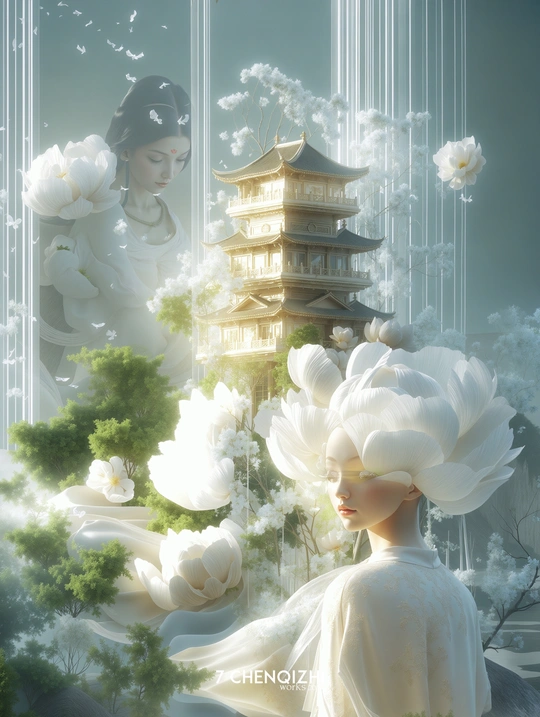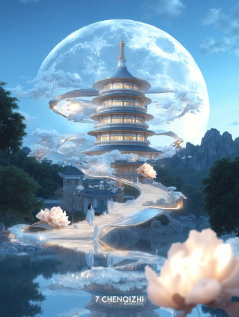 🍃春天,用国花牡丹开启一万次春和景明吧。 洛阳,一座承载五千年华夏文明的历史名城,素有“牡丹花都”美誉。为弘扬古都文化、推动科技与人文融合,“牡丹花都”以数字技术重新诠释神都洛阳的历史底蕴与现代魅力,助力文化产业创新发展。 设计理念: 本系列以虚拟数字艺术装置的思路进行内容创作,并将春、夏、秋、冬为时间叙事脉络,基于传统文化与新中式艺术的结合的方式,将洛阳著名龙门石窟卢舍那大佛、牡丹阁、明堂天堂、老君山金顶,分别对应牡丹的“生、盛、养、寂”四重生命态,如通过视觉化意向将大佛面庞隐现青绿山水,牡丹阁的牡丹仙子庇佑一方、明堂天堂忆往昔武皇、老君山上求仙祈福等,来共同构筑一场充满文化色彩的数字艺术作品。 本系列以春、夏、秋、冬为叙事脉络,将龙门卢舍那、牡丹阁、明堂天堂、老君山金顶,分别对应牡丹的“生、盛、蜕、寂”四重生命态,构建新中式美学下的数字文明史诗。
