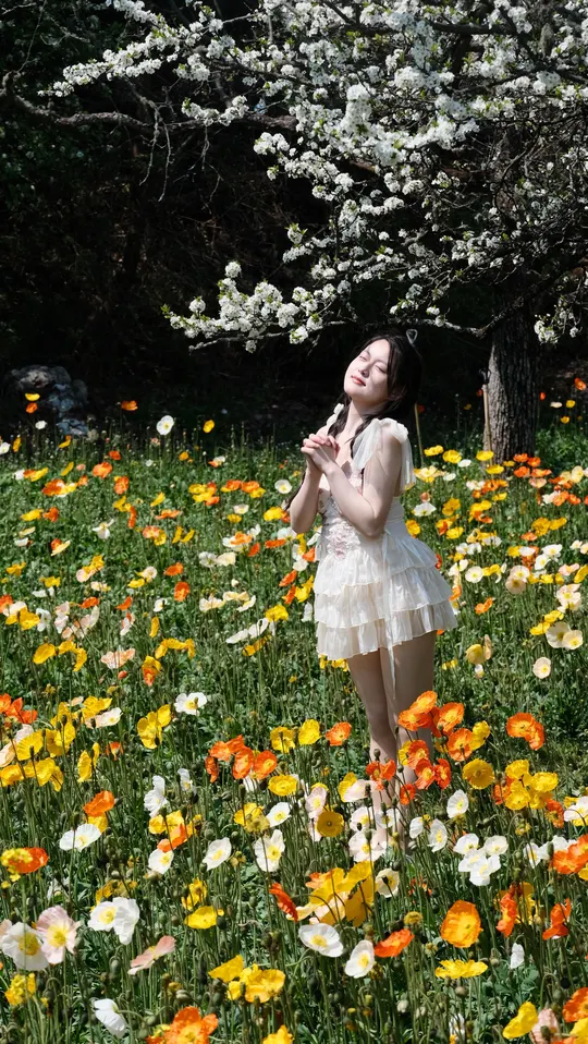 万花谷的花真的太好看了,小木屋➕梨花,虞美人➕夕阳,美得就像一幅油画!