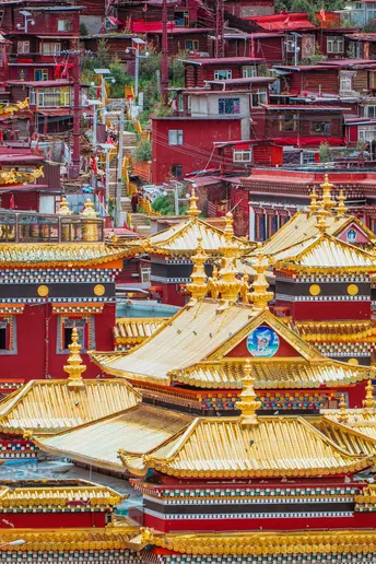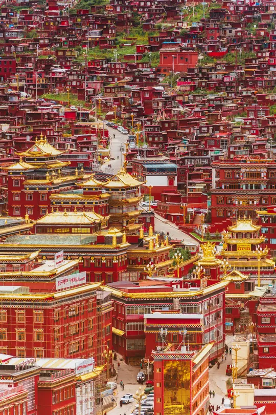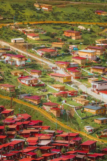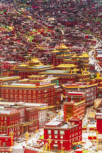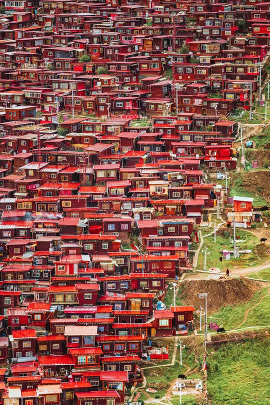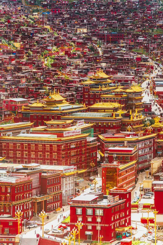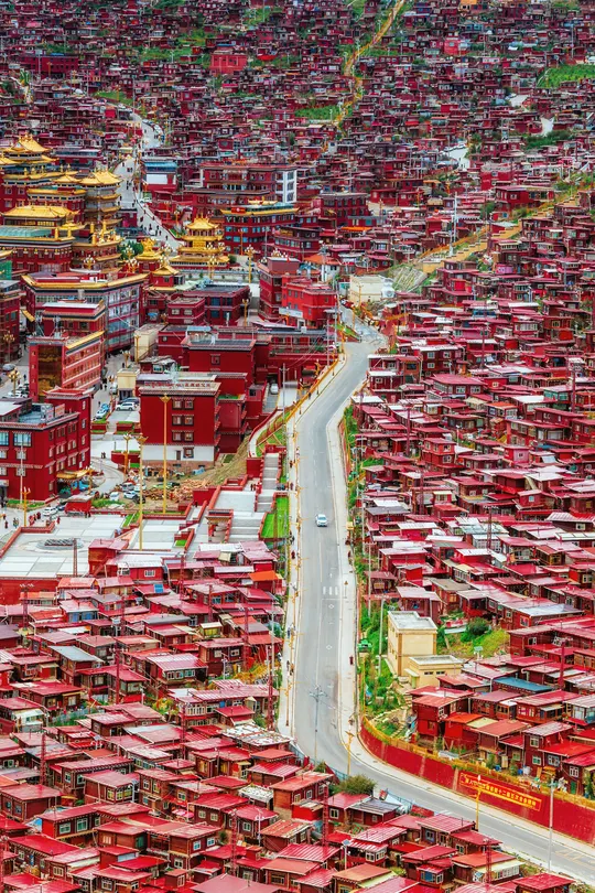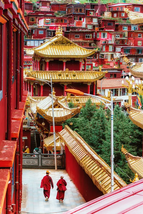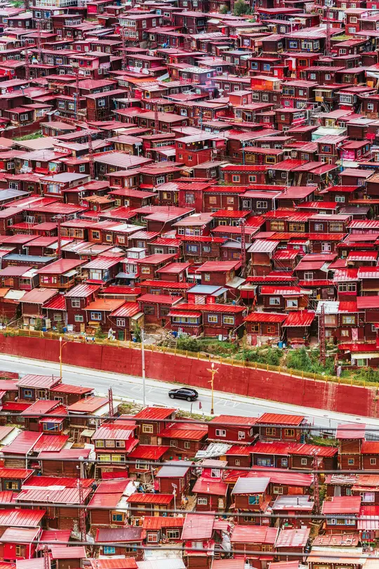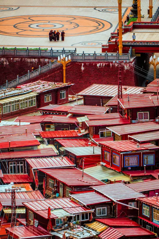 海拔4000米的稀薄空气让呼吸变得沉重,却让每一帧画面都浸透了神性——取景框里,那些散发金光的屋檐、密密麻麻规整的红色房子、突然闯入镜头的喇嘛,都成了佛国骤然复苏的佐证。 原来最震撼的摄影, 是当镜头成为连接人间与信仰的脐带。