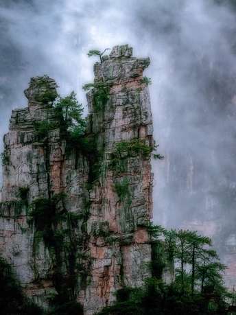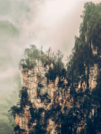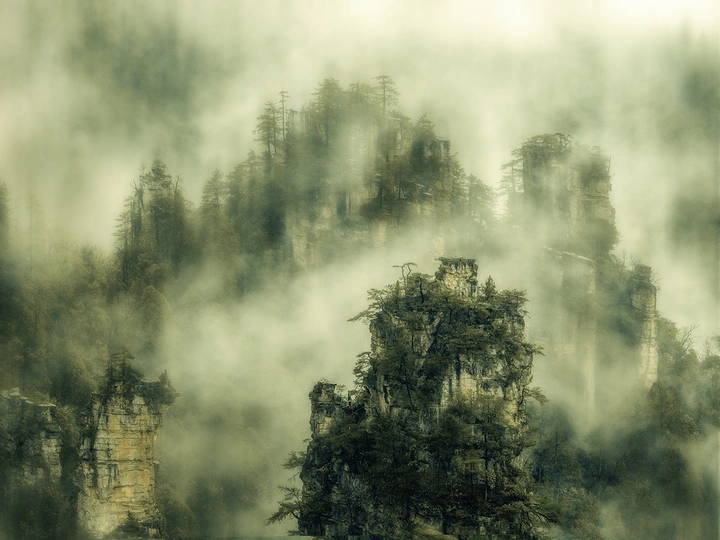 张家界的山,如刀劈斧削,直插云霄;甘肃的山,则苍茫浑厚,如大地褶皱。二者虽同为山,却呈现出截然不同的风貌,背后是亿万年地质变迁的鬼斧神工。当时拍摄张家界的天气很冷,山上面在下冰雹,走到大观台,此时的山已经被浓浓的雾遮盖得如仙境一般,只见远处有一团亮光,在走进一看原来是一家原住居民在生火,我急忙就前去询问老者,我们可否一起烤烤火,老者对我们招着手微笑道“可以可以”后来和这位老者聊到才知道,原来这些石峰在他们小时候是没有名字的。“什么'御笔峰’、'仙女散花’,都是后来人瞎起的。"老人蹲在路边抽烟,烟锅里的火光一明一灭。“我爷爷那辈人,管这叫'刀山',因为看着就叫人腿软。”