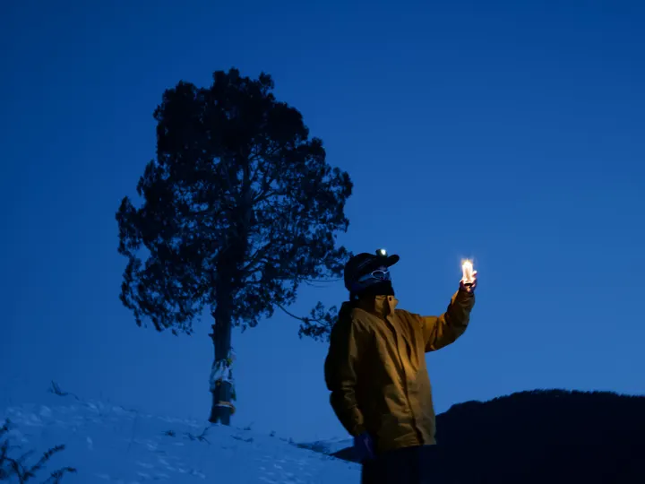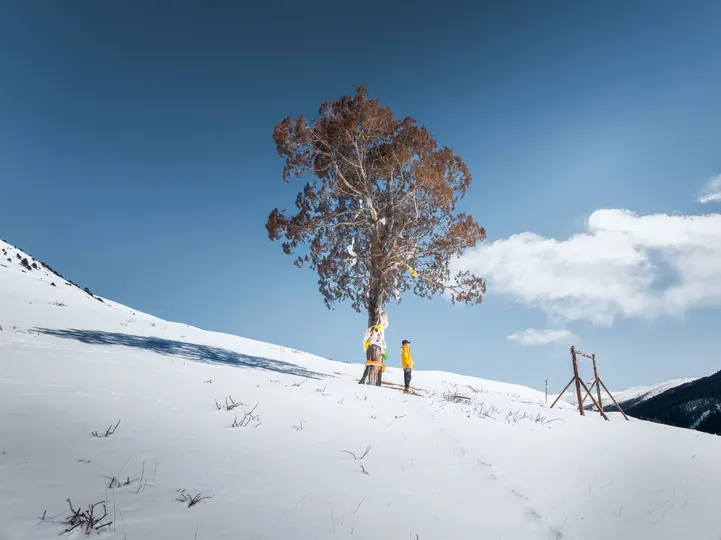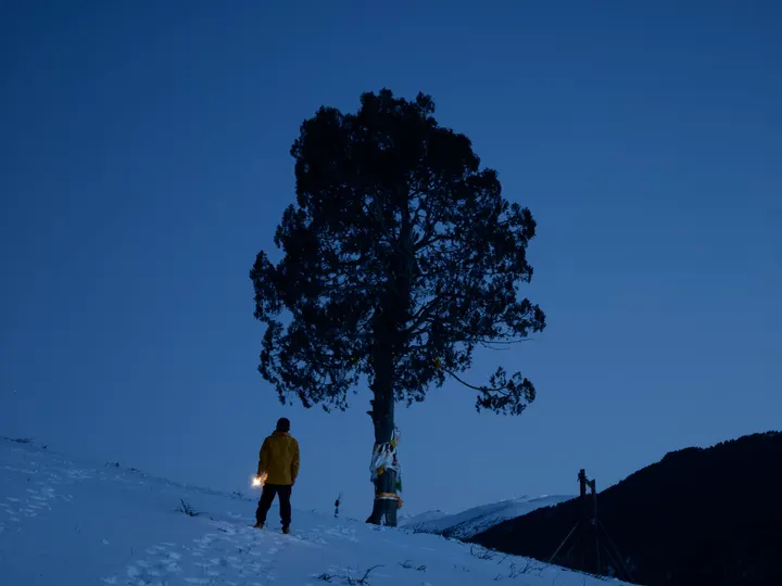 在川西旅途中,无意发现了这棵树,于是就从白天拍到了晚上
