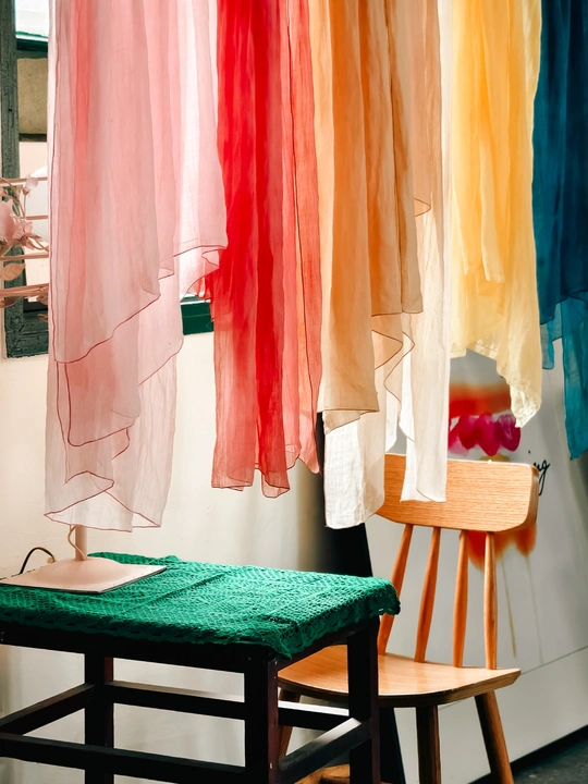 在旧时光的角落里,几缕彩纱悠悠垂落。阳光透过窗棂,为它们晕染上柔和的光影。那色彩,似是从旧相册里洇出的斑斓,带着岁月的温度。木椅静静伫立,桌面的绿布藏着往昔的故事。光影交织间,每一丝纱线都在诉说,诉说着那些被慢放的、温柔的旧时光。