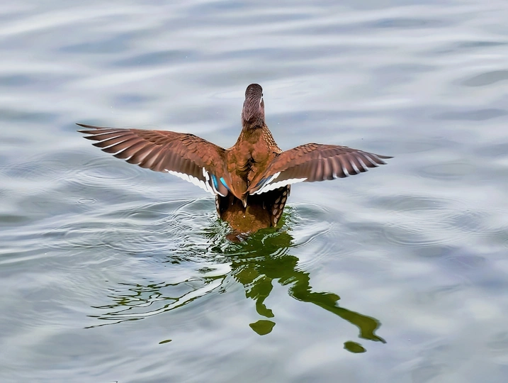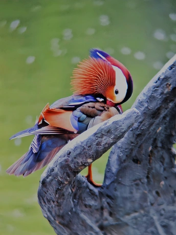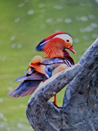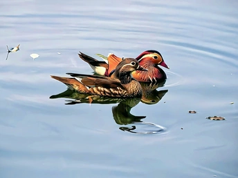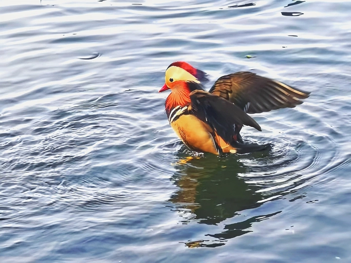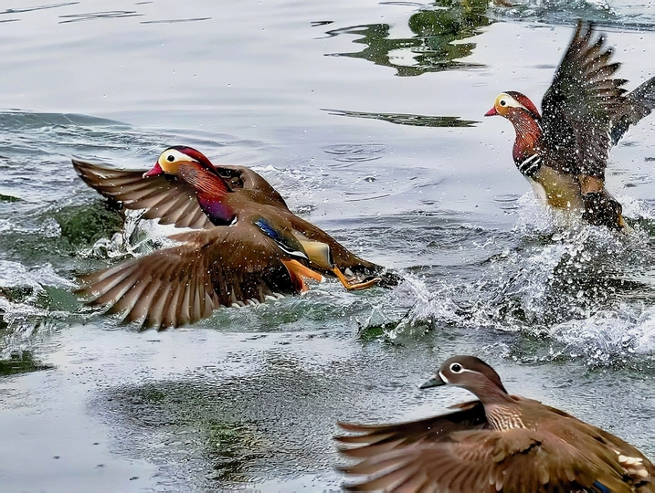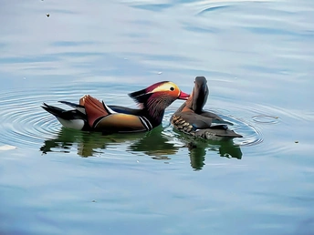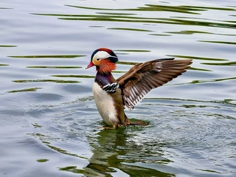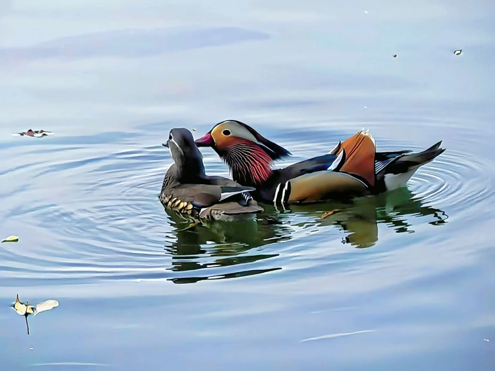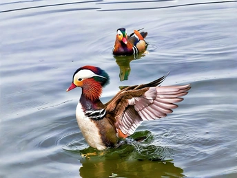 看到湖里的鸳鸯有时成双成对,形影不离,就是脱离群体,无论在岸上还是戏水,两只伴侣鸳鸯也是如影随形,有一只起飞另一只也必相伴,有时单只展翅,真是爱情的终坚形象大使啊。