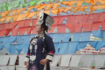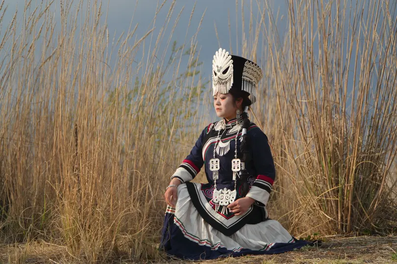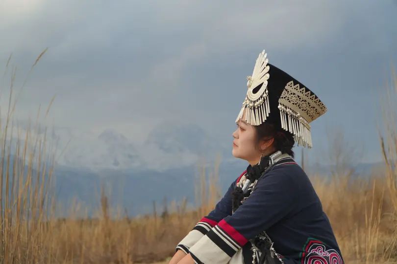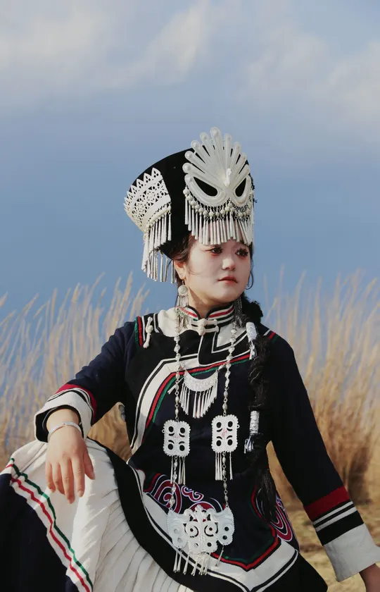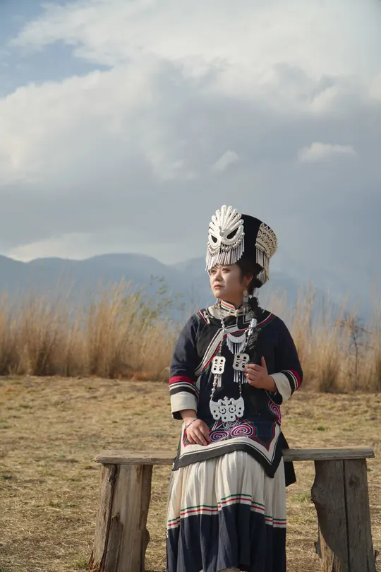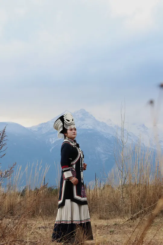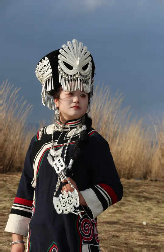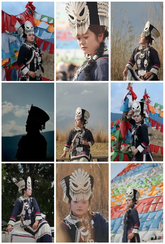 丽江植物园经幡下,邂逅彝族千年锦绣 身着非遗匠制的彝族华服,银饰轻响间,与经幡共舞。手工刺绣在阳光下流转,每一帧都是时光的密语,藏进茶马古道的风里。📸