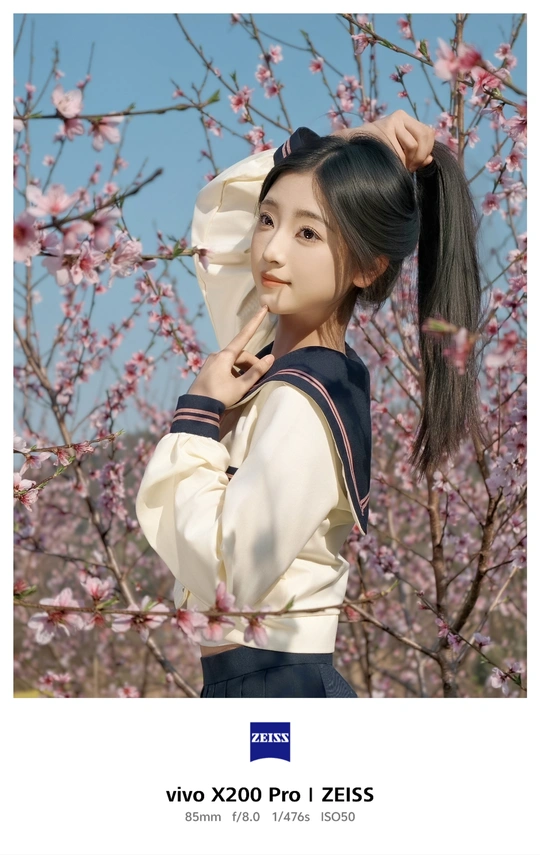 春天花开时节,使用手机在花丛之中进行人像创作,jk在阳光的照耀下充满青春气息