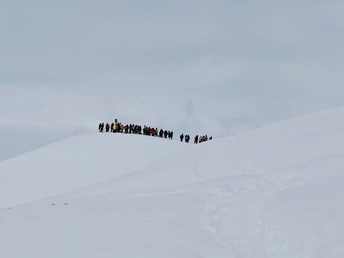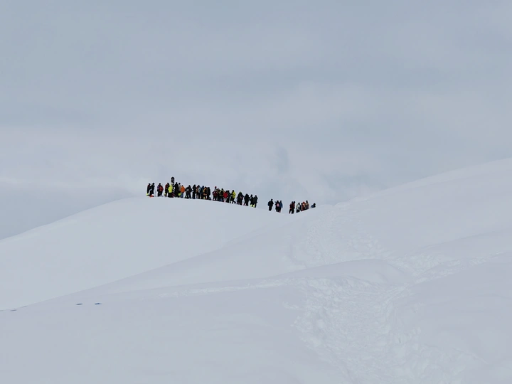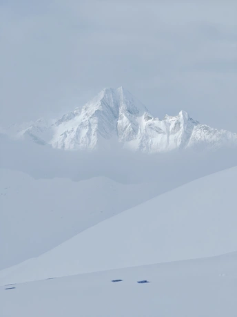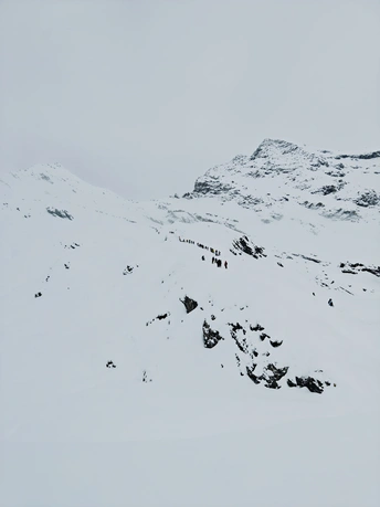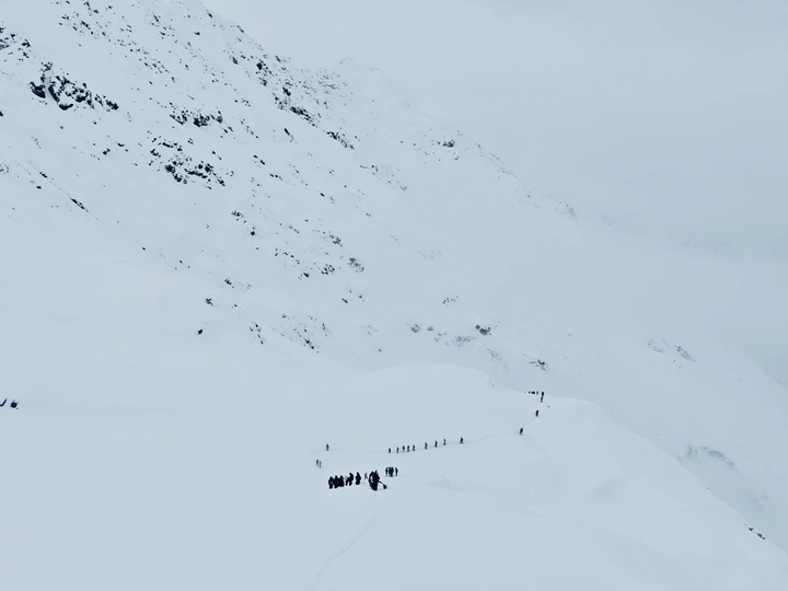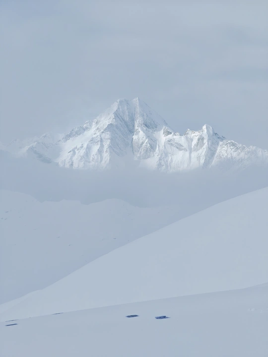 20250406徒步萨武新线的路途,白茫茫,天地之间只有自己的呼吸声和脚步声。