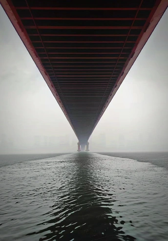 雷暴天气,与好友驱车钻到武汉鹦鹉洲长江大桥桥头,甩杆子。风浪越大,鱼越贵。路亚大军,10路9空。发现桥下雾气缭绕,顺手拍下此情此景。