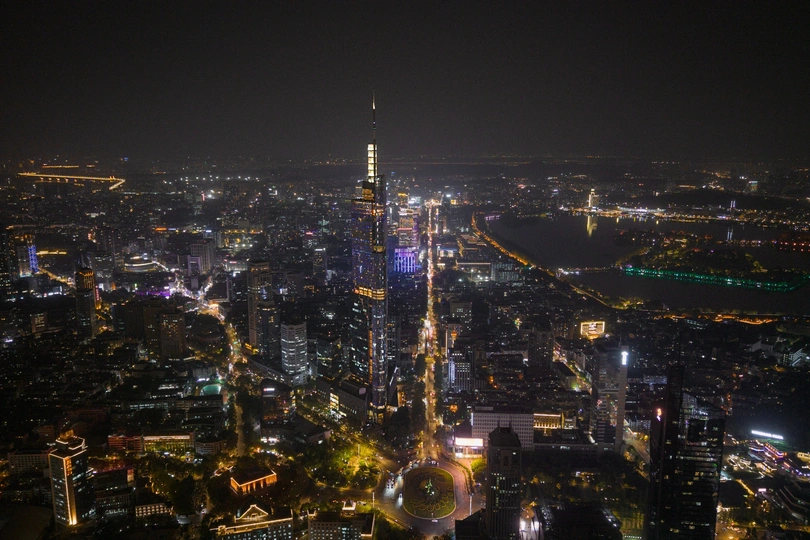 黑夜降临,紫峰大厦在夜色中熠熠生辉!