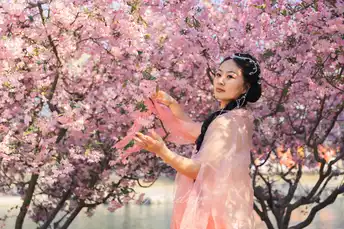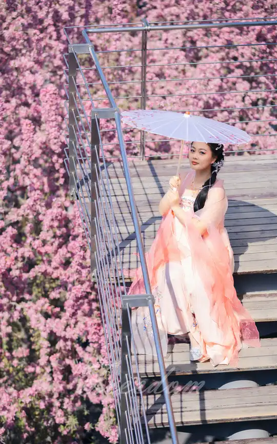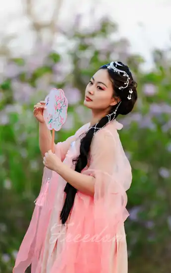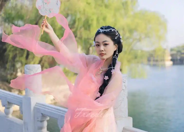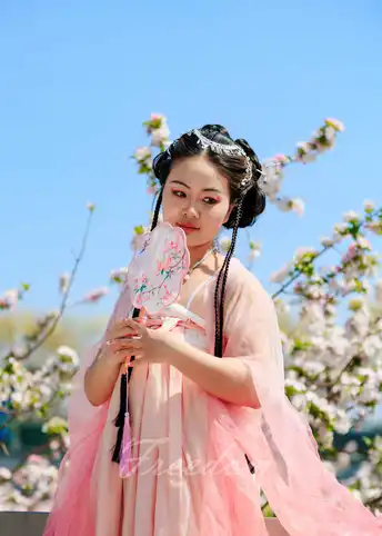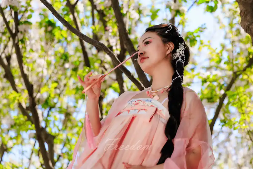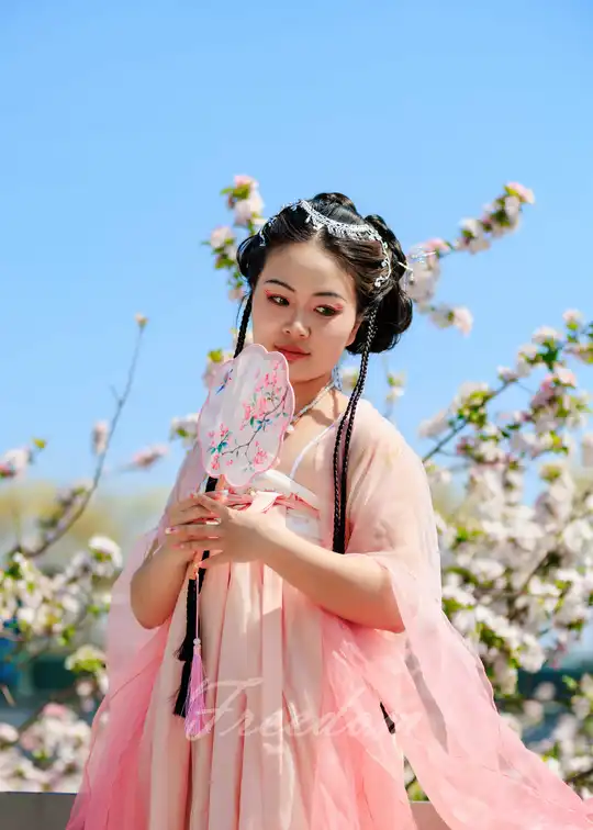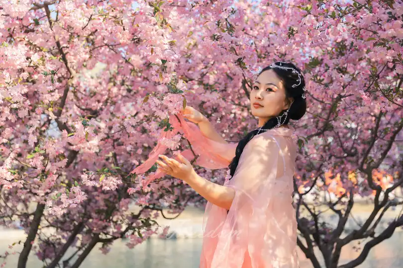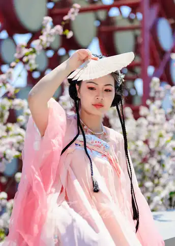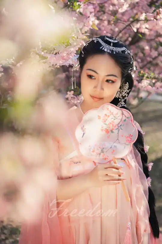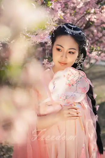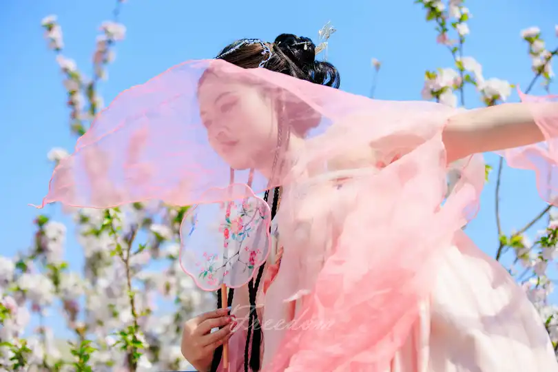 轻拢广袖,接住一瓣桃夭的私语。风过处,连尘埃都染了唐宋的韵。