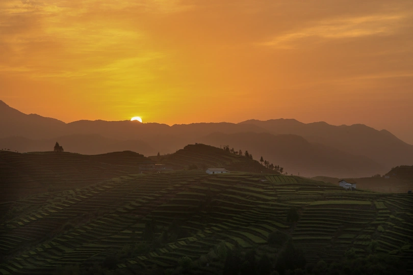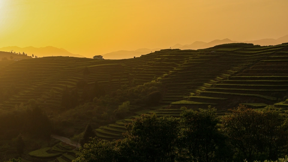 晨光中的茶园