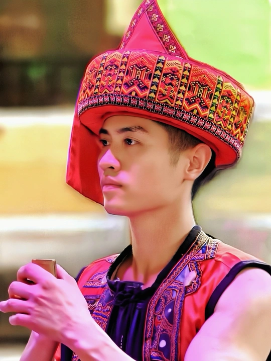 在黎族山寨参观时,被他们的艳丽的服装,清秀和善的面孔,爱歌善舞的特点,加之亚热带的环境所迷,这是闯入镜头的一位阿哥。