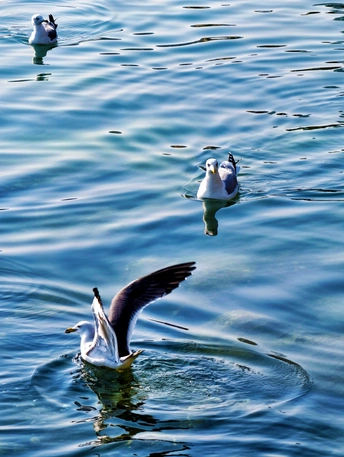 波光粼粼的水面上,海鸥或悠然游弋,或振翅欲飞,每一个姿态都诉说着自由与惬意。愿我们亦能如此,于生活的浪潮中寻得宁静,拥抱自在。