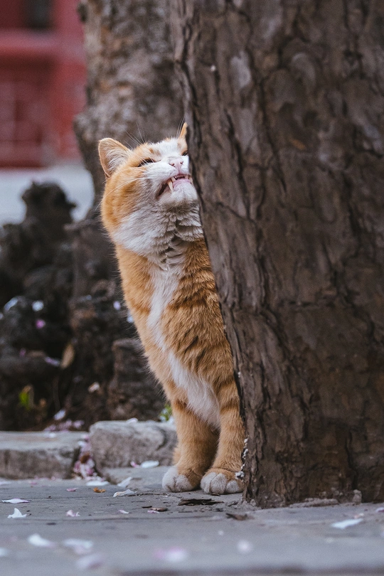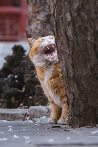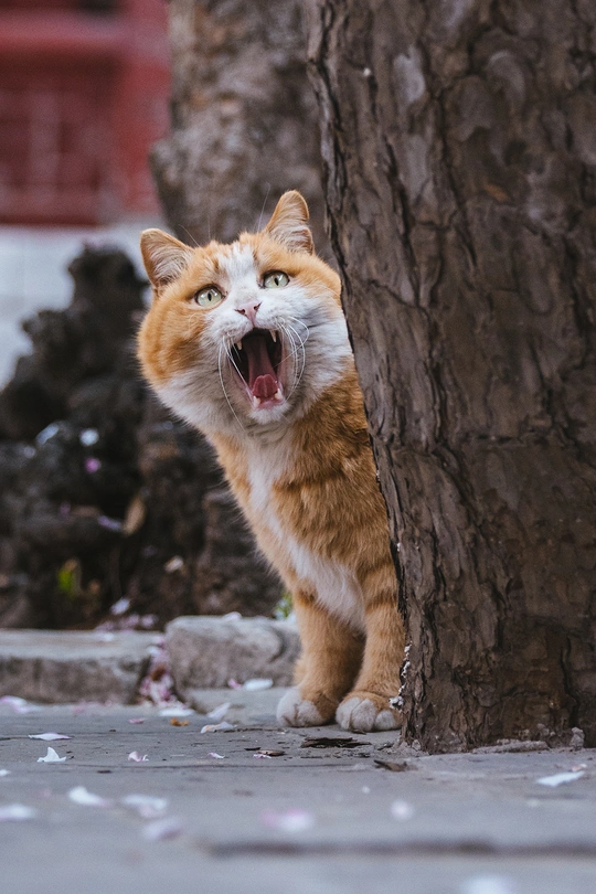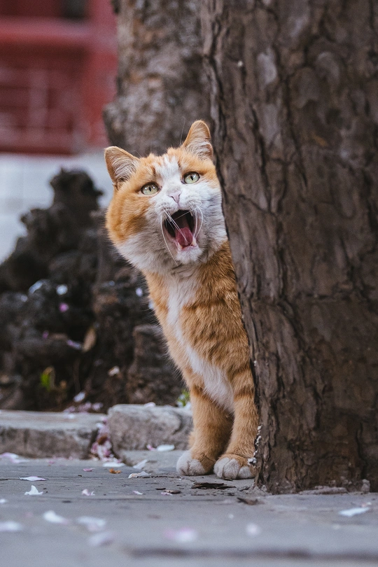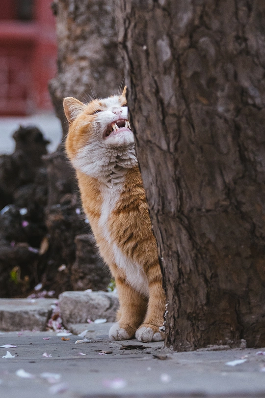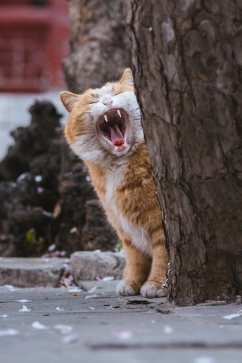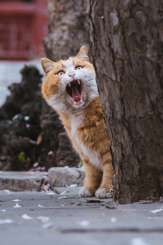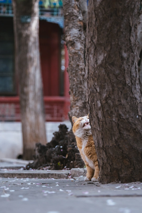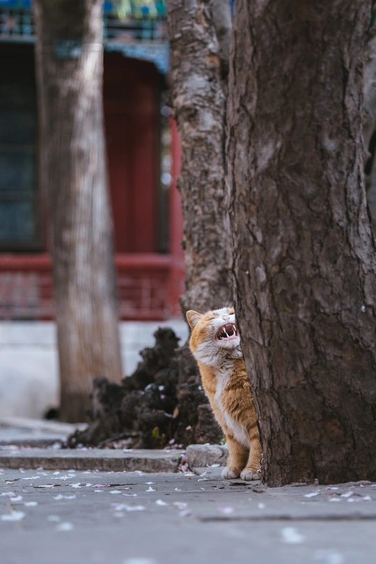 海棠花瓣洒落一地,帕帕从树后慢悠悠地探出头, 接着,一连串超大号哈欠霸气登场。 仿佛在说:“赏花不如补觉,阳光暖暖刚刚好。” 春日暖风、古树斑驳、花影飘零—— 万物复苏的季节里,最懂生活的永远是猫。 你认真感受春光,它却只想打个盹。