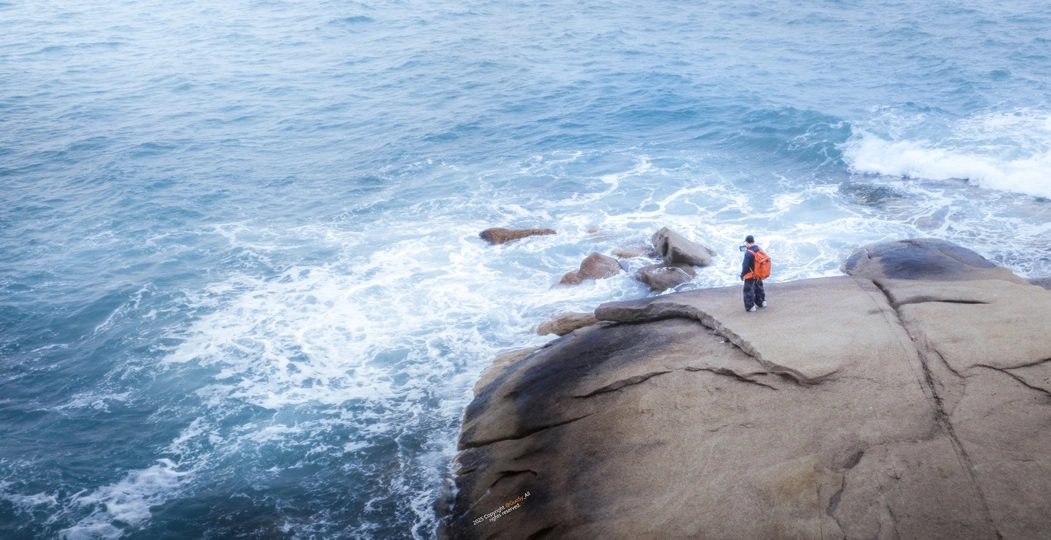 遮浪奇观分割出动静双海的神迹,南海观音寺旁的废弃古堡矗立在黑色礁石群之上,与雪白浪花形成戏剧性碰撞。退潮时分,神秘礁石滩露出水面,潮间带生物在岩缝间谱写生命乐章。 拍摄设备: DJI MAVIC 3 PRO