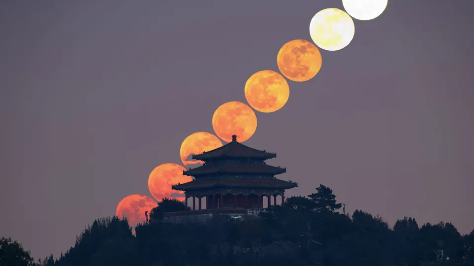 下了火车直接冲的,月亮颜色很好,140的气溶胶让月亮呈现出橘红色,除了万春亭没亮灯算个毕业,等亮灯满月再冲一次[自拍R] 万春亭位于北京中轴线的最高点,是俯瞰故宫、欣赏京城美景的绝佳之地,当月亮高悬于万春亭上空时,古建筑与明月相互映衬,构成了一幅极具古典韵味和视觉冲击力的画面。 [打卡R]北海五龙亭西岸 计算工具:@巧摄 📷:z72➕150500 参数:ISO3200 光圈f6 快门1/3