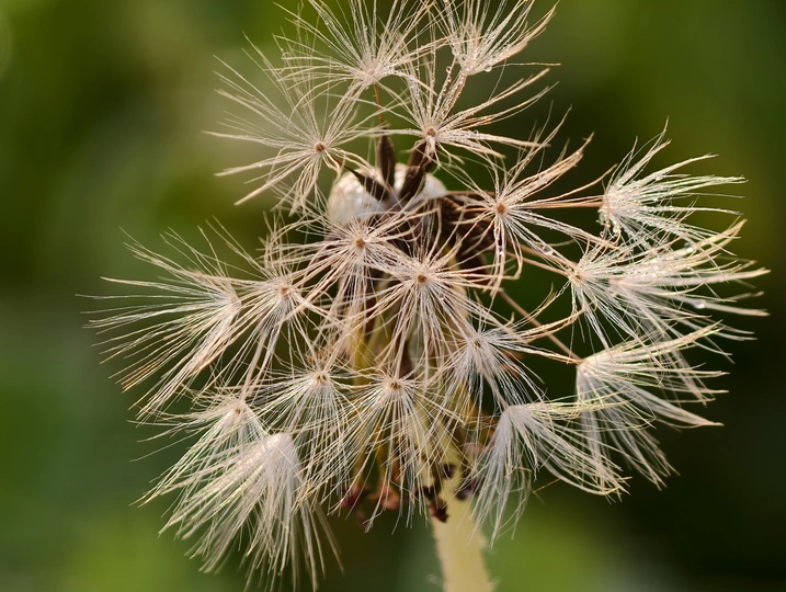 晶莹的露珠如水晶般装点着蒲公英的小伞裙,它即将带着梦想飞向远方……