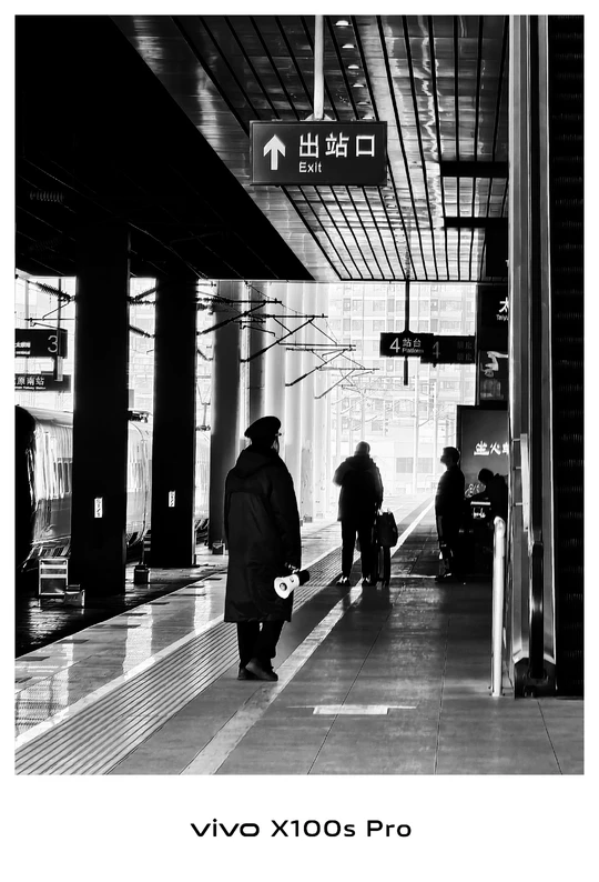 在站台光影里,往来的人们,或停或走,形成剪影。在这旅途的驿站里,每个人都扮演着不同的故事人物。