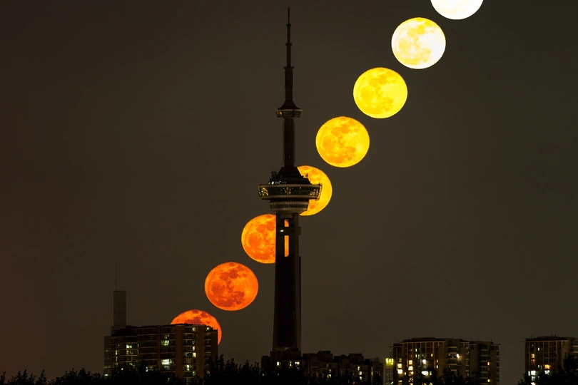 周一的傍晚,看到是难得的水晶天,就情不自禁的想到再去拍一次悬月,否则就太可惜了,而且才农历的十七,月亮还是蛮圆的。于是,点了个汉堡,下班到家后就立即出发了,还是去昨天的位置,只不过这次的目标换成了电视塔。出乎意料的是,平常都亮灯的电视塔,这段时间却颇为难得的暗了下去,也是奇怪。另外,可惜的是,这次的位置又又算差了,未能悬到电视塔中间的大球,稍稍偏差了一点儿,也是够糟心的。