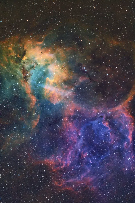 在浩瀚的宇宙深处,有个长得很像小狮子的星云,他就是sh2-132 Sh2 -132是一个位于仙王座的发射星云。它位于仙王座的南缘,距蝎虎座边界不远,沿着银河系平面;最适合在夜空中进行观测的时期是七月到十二月之间,这对于北半球陆地地区的观测者来说非常方便。 距离地球约3,200秒差距(10,370光年),位于仙王座OB1区域的英仙臂内,这是巨大而明亮的OB星协。