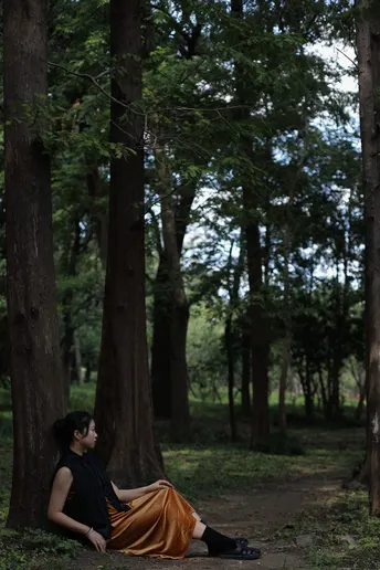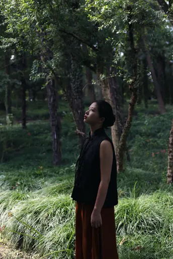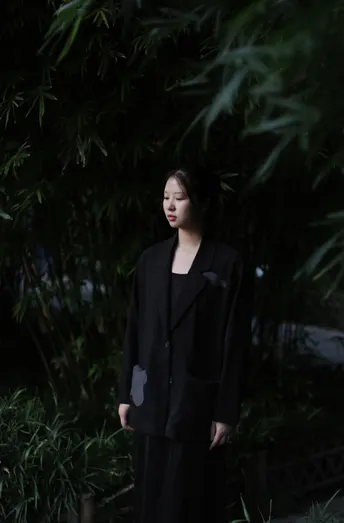 新中式吊带裙配上阔版西装 橘黄色丝绒吊带配上黑色中式马甲