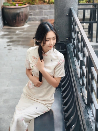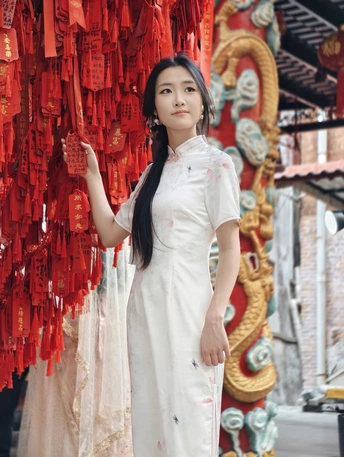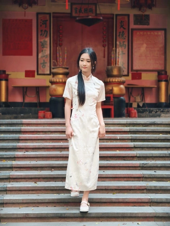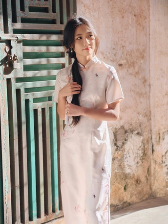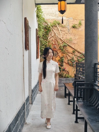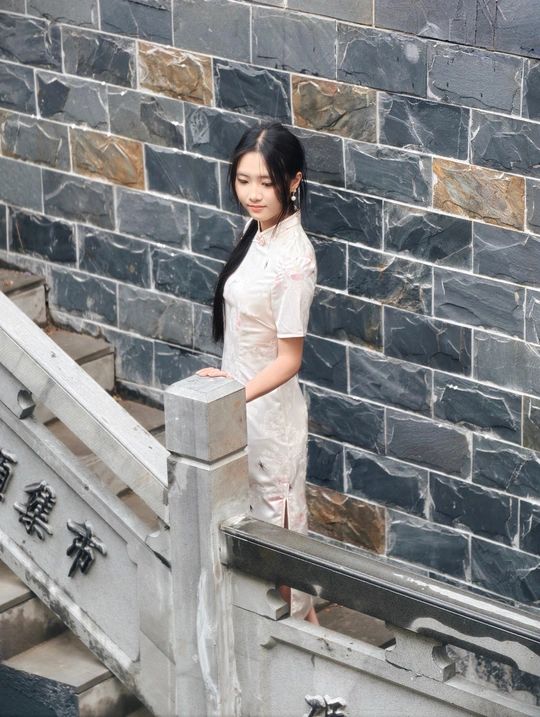 Shot on vivo X200 Pro. 四月中旬,一个阳光明媚、气候温和的午后,一名妙龄少女身着白色旗袍,缓步穿行于赤坎老街,静静感受着小巷周边古色古香的独特气氛。她仪态端庄秀丽,身姿曼妙轻盈,一颦一笑都透着无穷的魅力。。