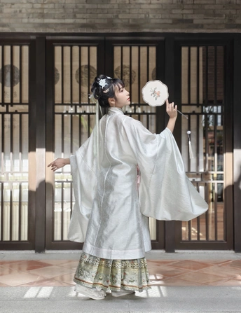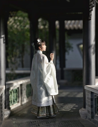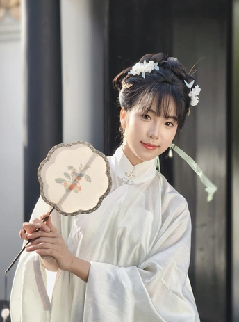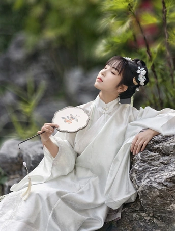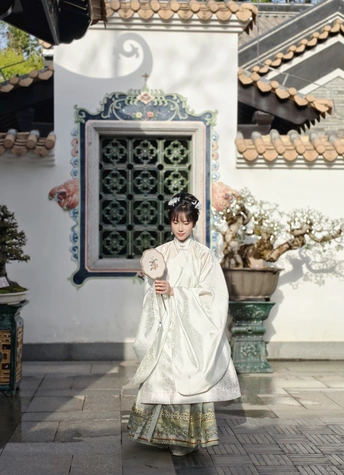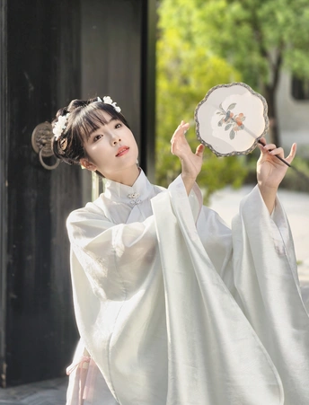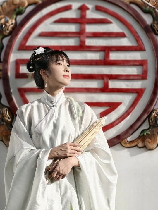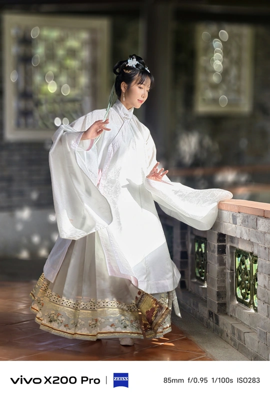着一袭素雅汉服,于古园幽径间穿梭。手持团扇,眉眼低垂似藏心事,抬眸顾盼又展灵动。在亭台楼阁、绿树石畔,留下古韵风姿,仿佛穿越时光,将千年风雅娓娓道来。