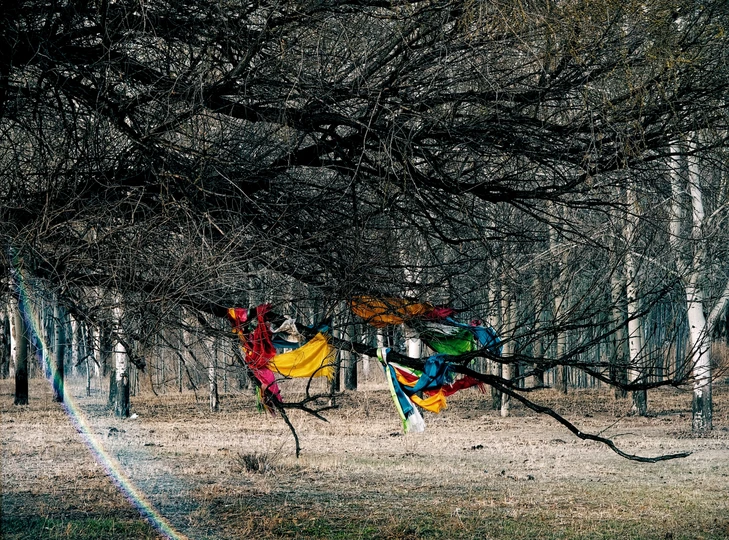 春风拂动那几条哈达,带着枝条微微摇动,那是草原欢迎各地的游客来内蒙古游玩,是一种民族特色的礼物,表达对客人尊贵的敬意。