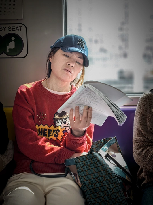 地铁车厢里经常会碰到努力的人们,无关年龄。