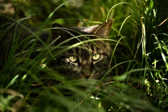 躲藏于树丛中的狸花猫,有种捕猎者的感觉