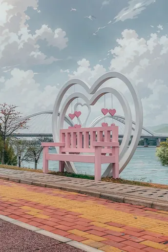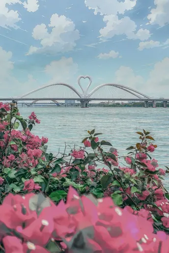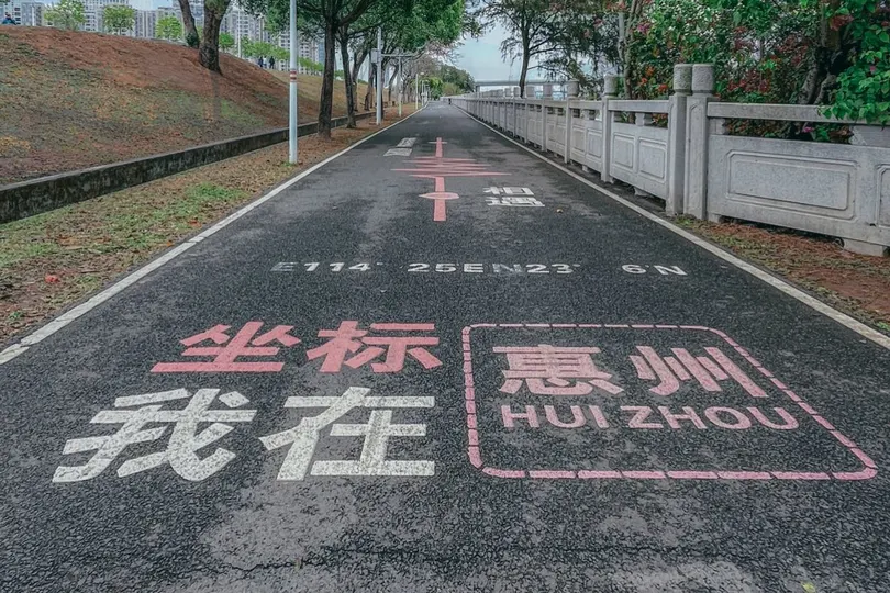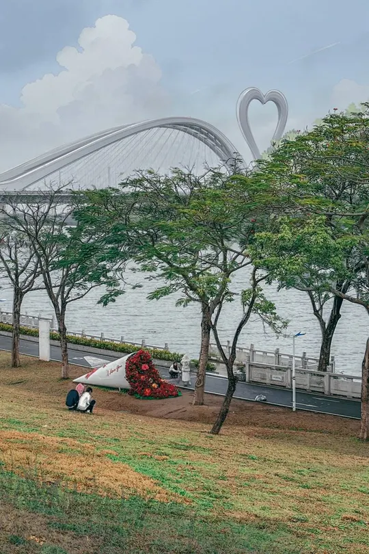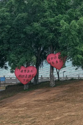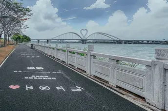 这里绝对是惠州滨江绿道的颜值天花板。写满歌词的绿道,各种爱心的布景,再配上横跨江面的恋爱脑大桥,漫步其中,恰巧清风徐来,老夫老妻都像是在恋爱了。