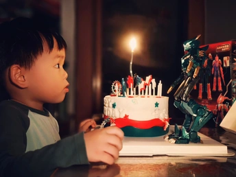我的小英雄,三岁啦!烛光闪烁,映照着你的童真与好奇。愿你的每一个梦想都能像这蛋糕上的烛光, 永远明亮炽热,在成长的冒险里,一路披荆斩棘,勇敢前行。