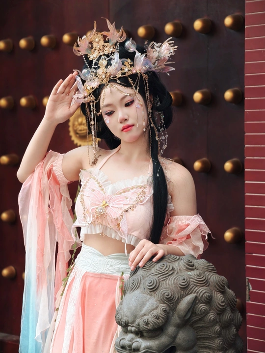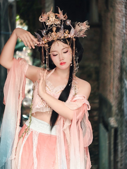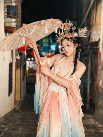 Shot on vivo X200 Pro. 四月中旬,一个春和景明的傍晚,一名妙龄少女身披粉色轻纱,头戴华丽的头饰,手执轻巧的花伞,缓步穿行于赤坎老街,静静感受着小巷周边古色古香的独特气氛。她仪态端庄优雅,肤若凝脂,双目炯炯有神,举手投足间都散发着宛若仙子般的迷人气息。。