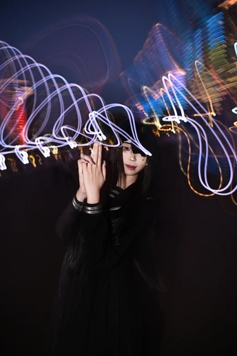 晚上七点左右和朋友在江滩玩,然后江滩边上的灯都开了,突然想到如果我拍个慢门是不是很有意思,真因为有这个想法才拍到光线在指尖流动的感觉