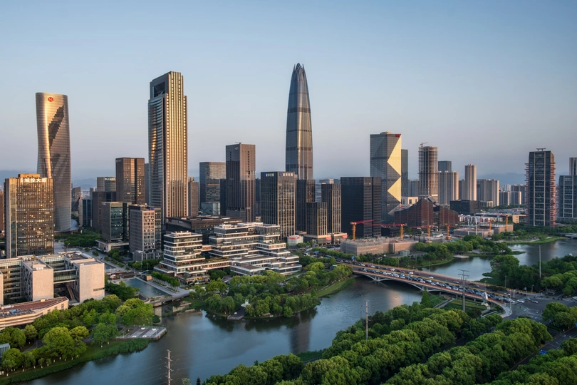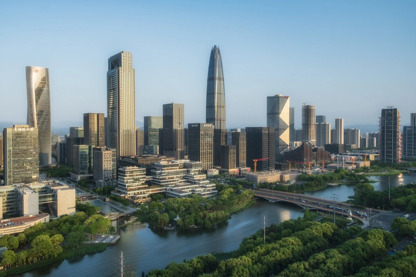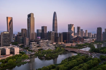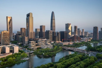 宁波东部新城中央商务区(CBD)位于宁波市鄞州区核心地带,是长三角南翼新兴的国际化商务中心。作为宁波城市“东扩”战略的标杆之作,这里以现代都市规划理念为引领,融合金融贸易、总部经济、商业服务与生态人居功能,形成了“一轴双心”的空间格局——以中央走廊串联国际金融服务中心与行政文化中心,打造出立体化的城市地标集群。 商务区汇聚了超40栋甲级写字楼,宁波中心大厦以409米高度刷新浙江天际线,入驻企业涵盖渣打银行、汇丰银行等50余家跨国机构,以及中石化、阿里巴巴等世界500强区域总部。地下空间创新开发体量达210万平方米,通过四线交汇的地铁枢纽实现立体交通互联。生态建设方面,6.9公里生态走廊贯穿全区,中央公园与明湖构成“城市绿肺”,40%的绿地覆盖率诠释公园城市理念。文化地标宁波城市展览馆、图书馆新馆等建筑以现代设计语言传承江南水乡韵味,夜间灯光秀与都市天际线共绘“宁波曼哈顿”的璀璨画卷。