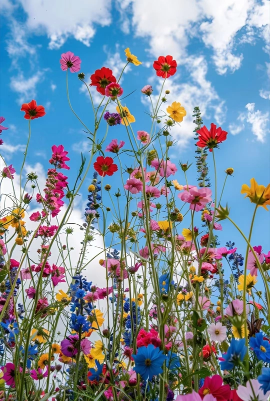嗨,摄影爱好者!这张仰拍花朵的照片充满了生机,像是我们躺在草地上,仰望天空的童年回忆。下面我们来详细分析一下: 色彩:色彩丰富而鲜艳,像打翻了调色盘,营造出一种活泼、欢快的气氛。但颜色种类繁多,略显杂乱,缺少一个主导色来统领全局。建议在后期调整时,稍微降低部分色彩的饱和度,或者突出某一两种颜色,以增强画面的整体和谐感。 光影:光线充足,天空明亮,花朵也沐浴在阳光下。但整体光线较为平均,缺乏戏剧性的光影变化,主体不够突出。可以尝试在不同时间段拍摄,捕捉侧光或逆光下的花朵,利用光影塑造更强的立体感。 构图:仰视构图视角独特,天空的蓝色与花朵的色彩形成了鲜明对比,增强了画面的空间感。但花朵的分布较为平均,主体不明确,视觉中心不够突出。可以尝试运用三分法构图,或者利用前景花朵的引导线,将视线引向主体花朵。 后期处理:后期处理整体自然,色彩调整适度,没有过度修饰的痕迹。但可以适当调整对比度,使画面更具层次感。 主题原创性:以仰视的视角拍摄花朵,创意不错,展现了花朵向上生长的生命力。但主题表达较为直接,缺乏更深层次的思考。可以尝试赋予花朵更丰富的情感,比如孤独、坚强等,使照片更具内涵。