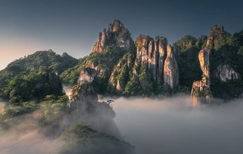 在日出过后一段时间,我升起无人机寻求新的机位。捕捉到了三清山云海,标志性的主峰,巨蟒出山,东方女神的合影