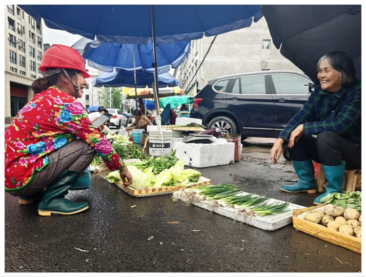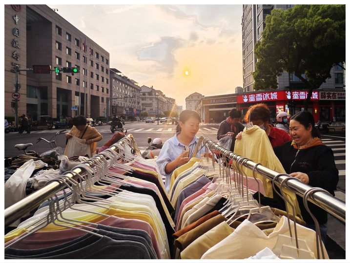 集市,是藏着生活真谛的地方。 路边堆叠的藤编篮,纹理间藏着质朴匠心;干货摊前,人们弯腰挑选,似在为三餐勾勒幸福模样。卤味摊热气腾腾,老板笑意盈盈,香味直钻鼻腔,勾动馋虫。 卖菜阿婆白发苍苍,眼神却满是温和。服装摊在夕阳下,成了时尚小天地,试衣的人们笑得灿烂。还有那抱着孩子守摊的摊主妈妈,疲惫又幸福。 这里没有精致布景,却处处是动人风景。每一处摊位、每一张笑脸,都在诉说生活的热望。走进集市,就走进了最鲜活的人间。 #集市风情 #烟火日常 #生活百态