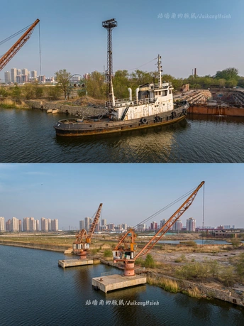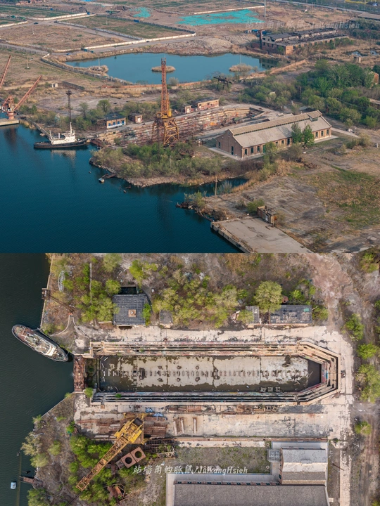 海风自旧日吹来,穿越百年时光,在天津滨海的一隅,停驻于沉默的石缝之间。北洋水师大沽船坞遗址,就这样静静地卧在海河之畔,像一位年迈却不屈的老人,用斑驳的肌理,诉说过往的波澜壮阔。 这里曾是北方最早的现代造船厂,是李鸿章亲手奠基的希望之地。那时,北洋水师如日中天,钢铁的船身、咆哮的蒸汽、刚铸的军魂,一同在这片土地上诞生。船坞内,工匠们的锤音如雨点般落下,每一次敲击都敲进了那个时代的梦想与不安。 甲字船坞,如今仍在。它南北延伸128米,岁月在它的坞壁上留下了厚重的沉静,浮箱坞门闭合如昔,仿佛仍在等待那一艘归港的军舰。而昔日轮机厂房,尽管屋顶塌陷,窗棂剥落,却仍能看见那一根根八角铁柱下的坚毅——那是中国近代工业最初的骨架,风霜未曾褪尽锋芒。 也曾有战火燃起,将海神庙化为灰烬,将希望摧残得七零八落。但历史从不吝惜重建的力量。庚子年后,船坞重修;民国时期,更名为海军部大沽造船所;新中国成立后,它再度化身工业血脉,在喧嚣与沉寂之间沉浮。 如今的人们,或许已不再记得北洋舰队的威名,也未曾听过钉子落在坞底的清响。但这片遗址,仍如一册摊开的旧史书,沉静、厚重、温柔。它不声不响地守着黄昏,看晚霞洒在坞门之上,看