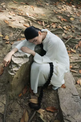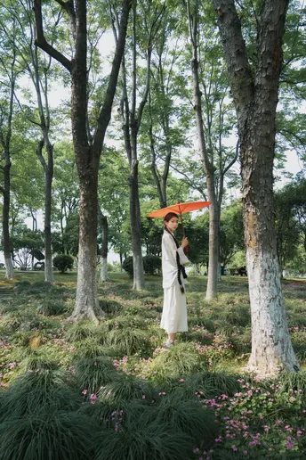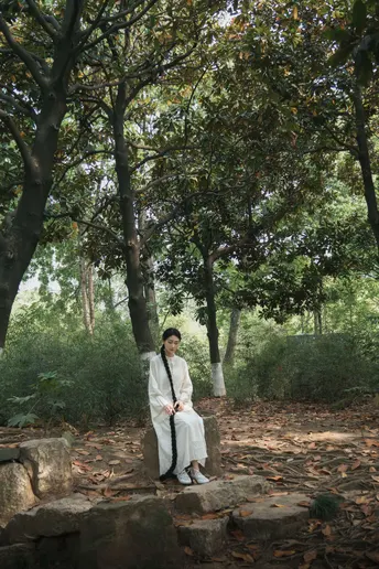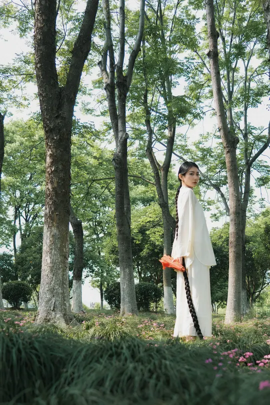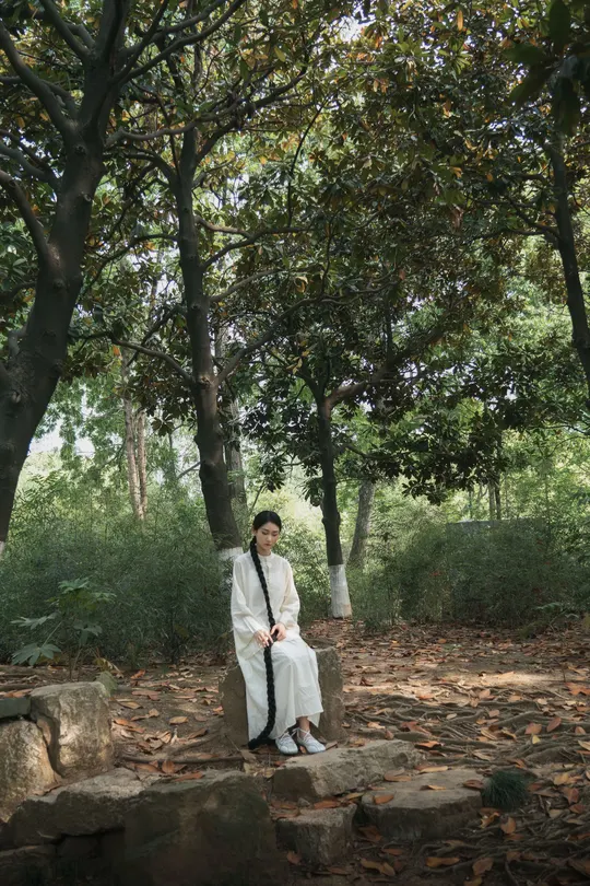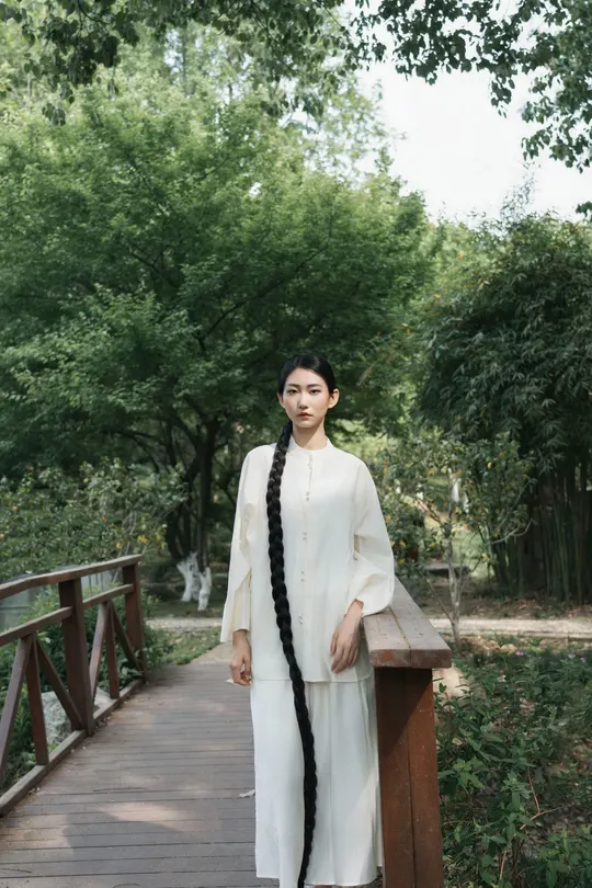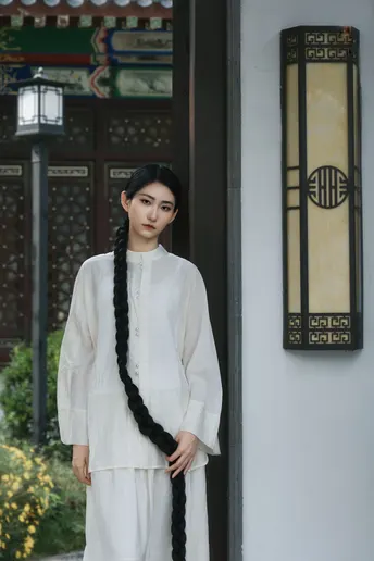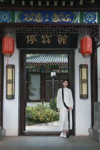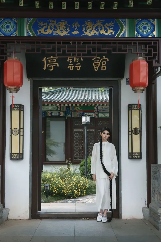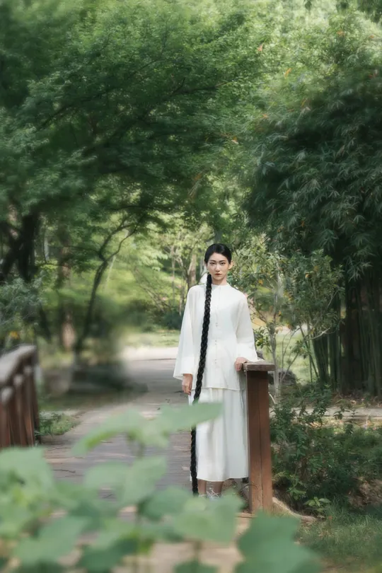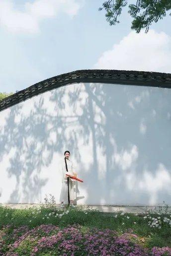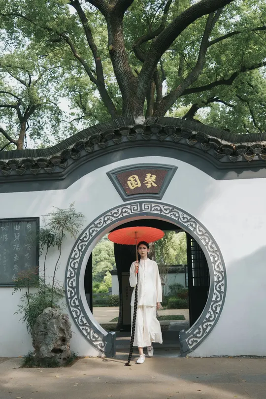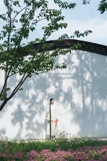 青瓦白墙下,新中式衣衫流转古韵。轻踏石板,风穿回廊,将喧嚣留在身后,只余草木私语,与我共赴一场静谧之约。