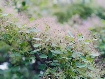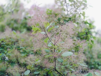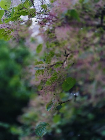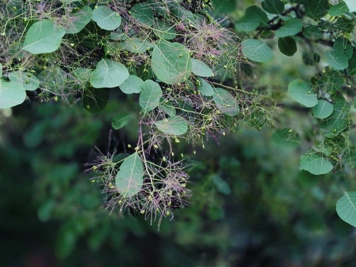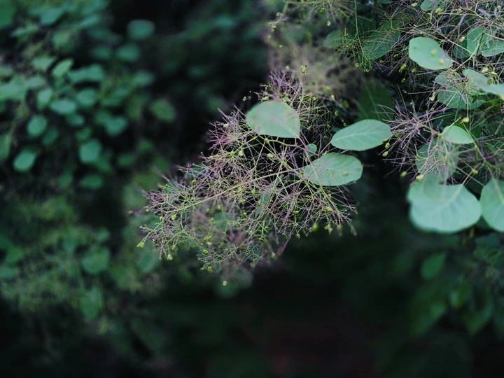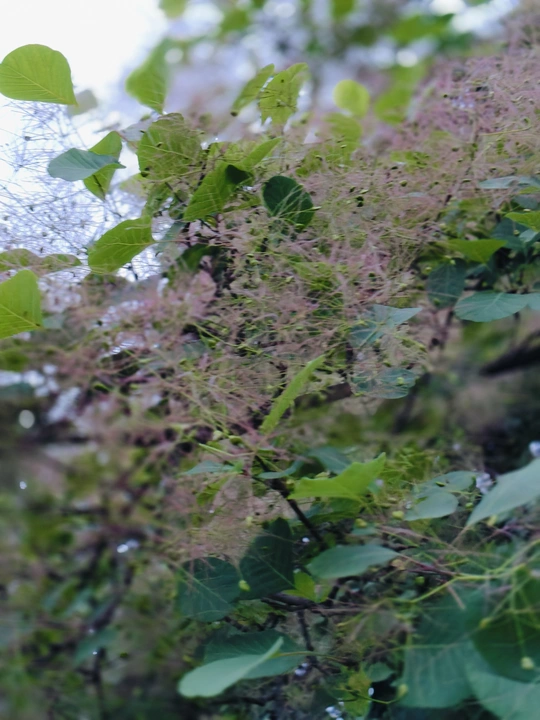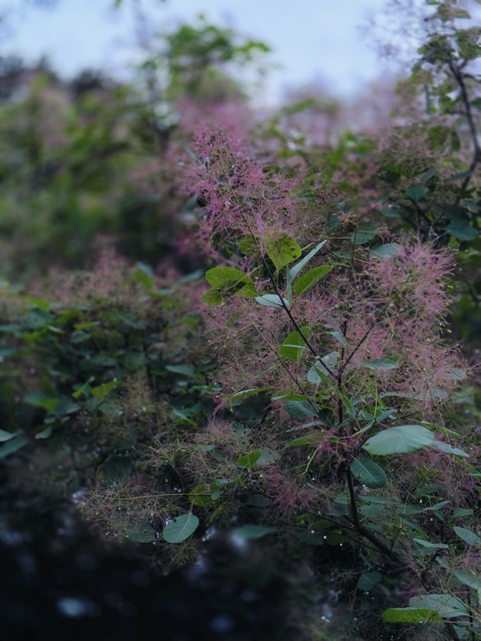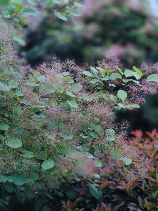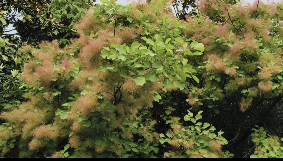 第一次见到这粉黛朦胧、紫雾缭绕、云烟满树的情景被惊艳到了,还有这么奇特的花儿,(其实也不是它的花),也第一次知道还有“烟树”这么古风诗意的名字,原来香山红叶多是这种树,造化神秀,远非常人能想……