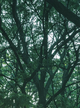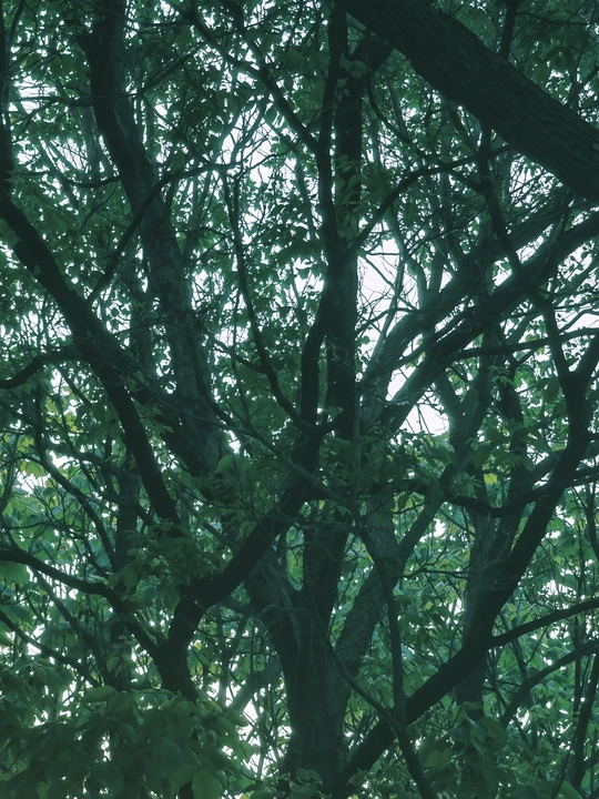 自然绿意中蕴含的神秘生命力,树枝交错、绿叶蓬勃