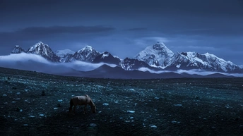 去往西藏的第一夜,我有幸发现贡嘎就矗立在我的眼前,在月色的轻抚下,如此安静,而又壮美。