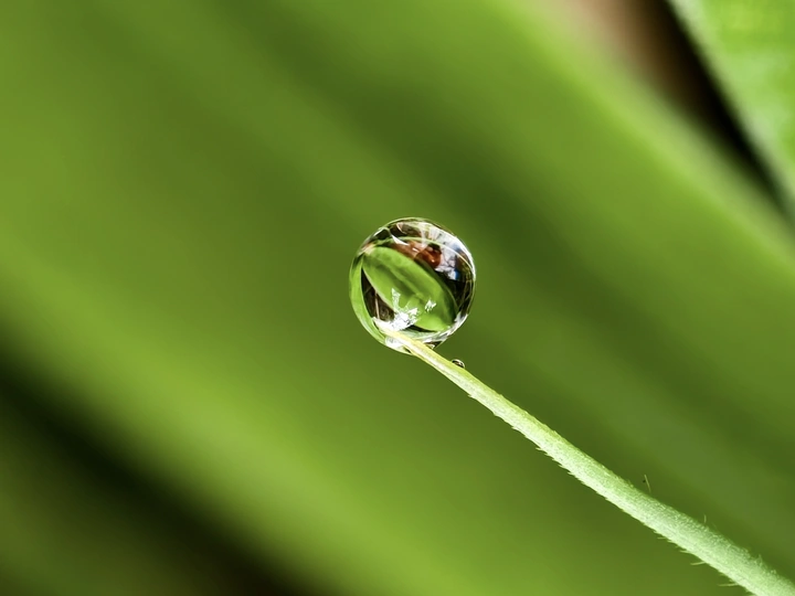 清新的竹叶,叶尖上的露珠倒映着漂亮的绿叶